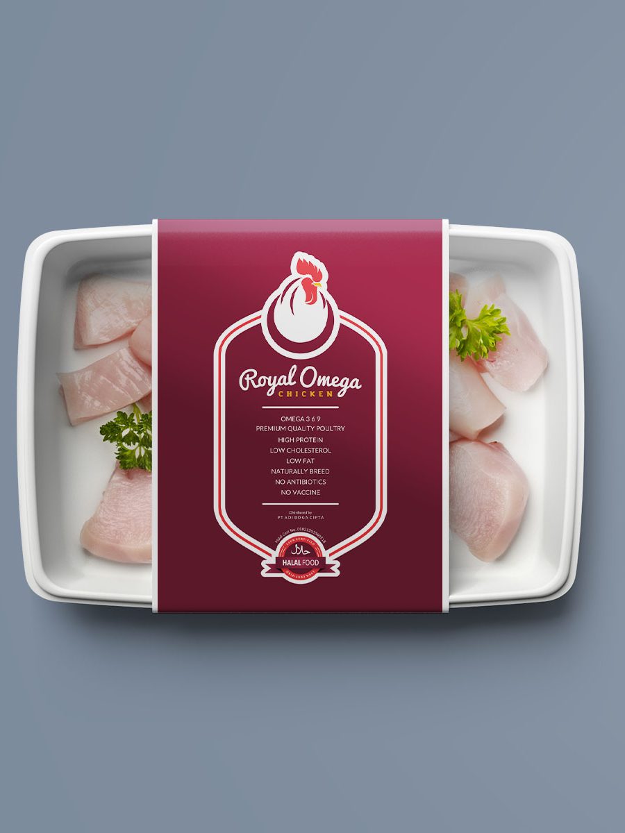 Royal Omega Chicken, sebuah brand yang menjual Ayam Probiotik yaitu ayam yang diternak secara alami, dan selama masa peternakannya, ayam tersebut tidak terpapar bahan kimia apapun. Dengan nilai spesial yang ditawarkan tersebut, sebuah brand tentu memerlukan logo yang dapat membuat customer teringat ketika melihat logo nya.